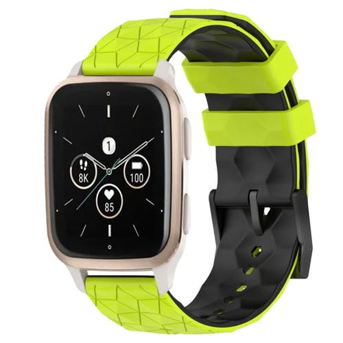 Banda de Reloj Garmin Forerunner Sq2 Music 20mm Silicona patrón fútbol (Verde Lima + Negro)