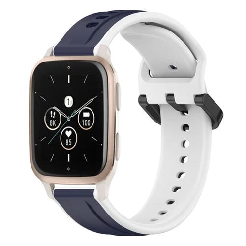 Banda de Reloj Silicona para Garmin Forerunner Sq2 Music 20mm (Azul Medianoche + Blanco)