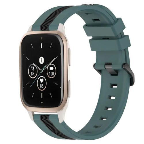 Banda de Reloj para Garmin Forerunner Sq2 Music Silicona Dos Colores Vertical 20mm (Verde + Negro)