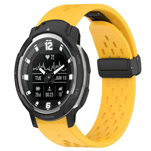 Correa de Silicona para Garmin Instinct Crossover con Orificio y Hebilla Plegable 22mm (Amarillo)