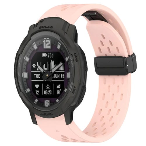 Correa de Silicona para Garmin Instinct Crossover Solar con Orificio y Hebilla Plegable 22mm (Rosa)