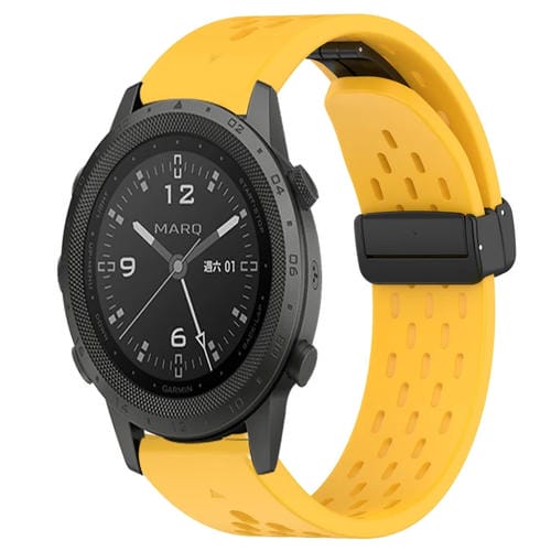 Correa de Reloj para Garmin Marq Commander Silicona con Orificio y Hebilla Plegable 22mm (Amarillo)