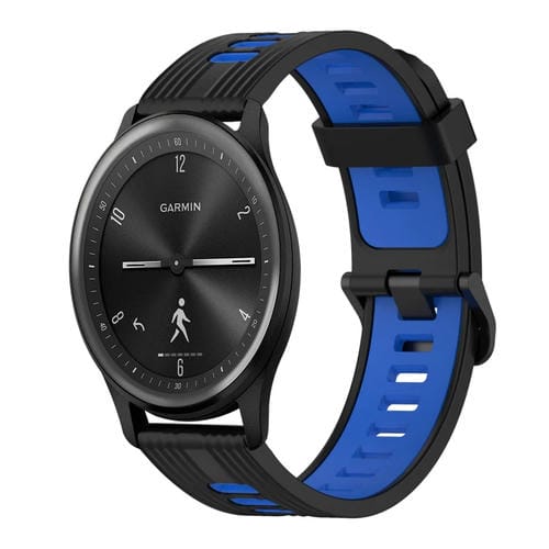Banda de Reloj de Silicona para Garmin Move Sport 20mm Patrón Vertical (Negro+Azul)