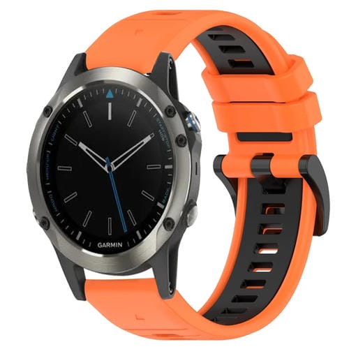 Correa silicona deportiva Garmin Quatix 5 Sapphire 22mm bicolor (Naranja + Negro)