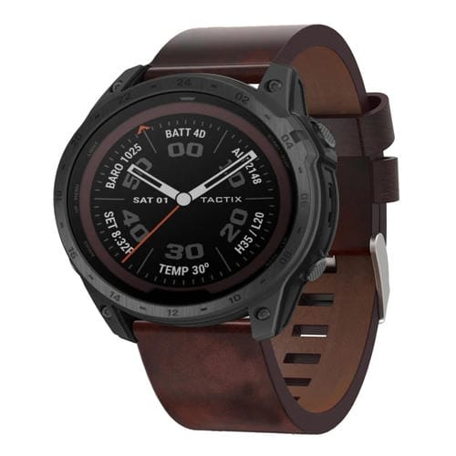 Correa de Reloj para Garmin Tactix 7Pro de Cuero con Hebilla de Acero 26mm (Marrón)