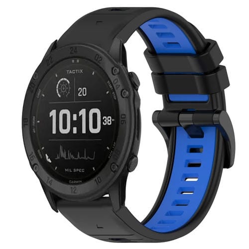 Para Garmin Tactix Delta 26mm Sports Two-Color Silicone Watch Band (Negro + Azul)