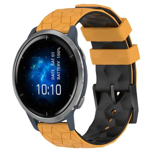 Banda de Reloj Garmin Venu 2 22mm Silicona Patrón de Fútbol (Amarillo + Negro)