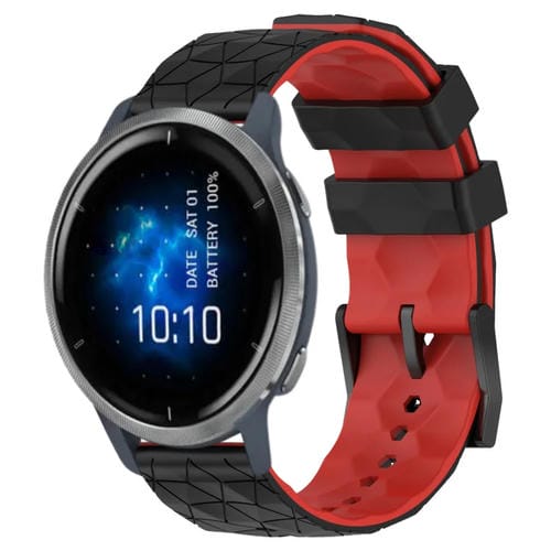 Banda de Reloj Garmin Venu 2 22mm Silicona patrón de fútbol dos colores (Negro + Rojo)
