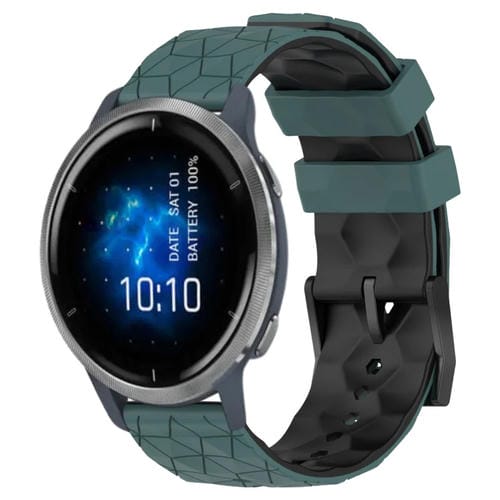 Banda de Reloj de Silicona para Garmin Venu 2 con Patrón de Fútbol 22mm (Verde Oliva + Negro)