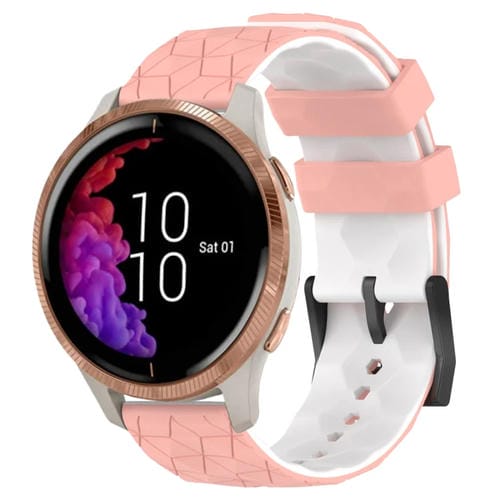 Banda de Reloj Garmin Venu 20mm silicona patrón de fútbol dos colores (Rosa + Blanco)