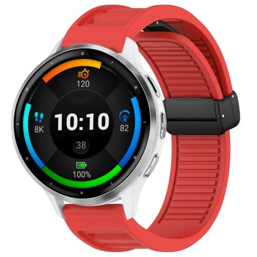 Correa de Silicona para Garmin Venu 3 con Hebilla Magnética Plegable de 22mm (Rojo)