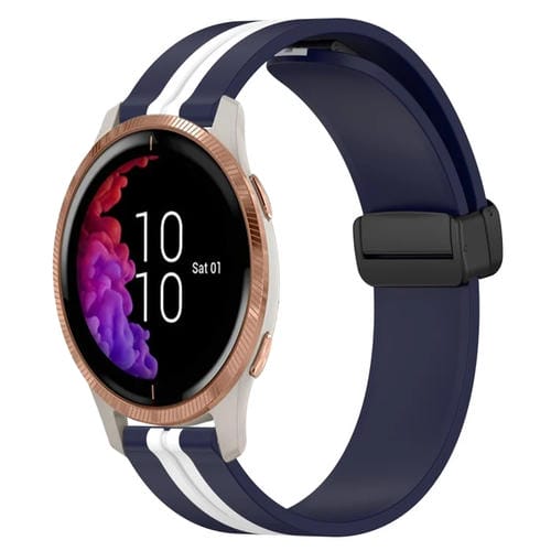 Correa de Reloj para Garmin Venu Silicona con Cierre Magnético Plegable 20mm (Azul Medianoche + Blanco)