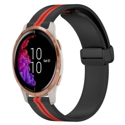 Correa de Silicona para Garmin Venu con Cierre Magnético Plegable de 20mm (Negro + Rojo)