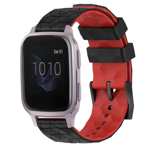 Banda de Reloj Garmin Venu Sq 20mm Silicona Dos Colores Patrón de Fútbol (Negro + Rojo)