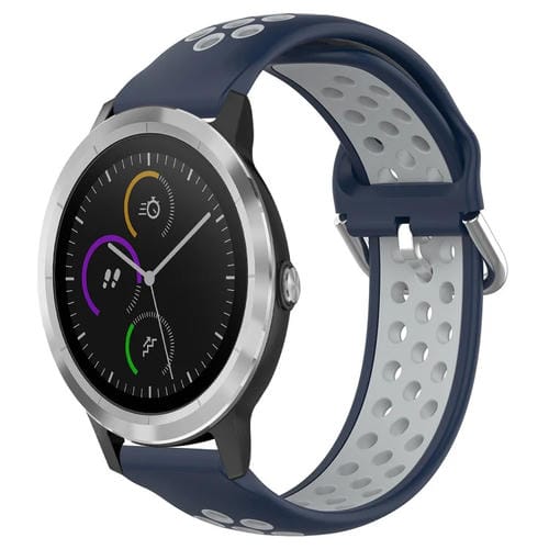 Correa de Silicona Deportiva para Garmin Vivoactive3 20mm (Azul Medianoche + Gris)