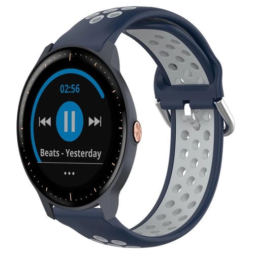 Banda de Reloj de silicona para Garmin Vivoactive3 Music 20mm deportiva transpirable perforada (Azul Medianoche + Gris)