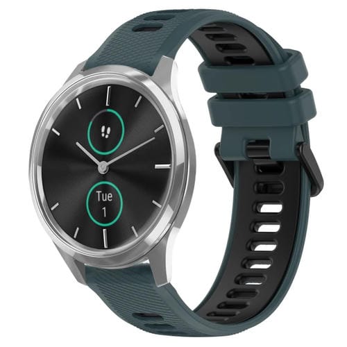 Correa para Garmin Vivomove Luxe 20mm Sports silicona bicolor (Verde Oliva + Negro)