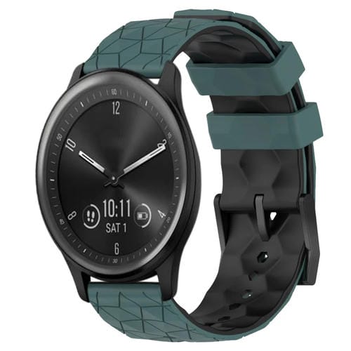 Banda de Reloj de Silicona para Garmin Vivomove Sport 20mm Patrón de Fútbol (Verde Oliva + Negro)