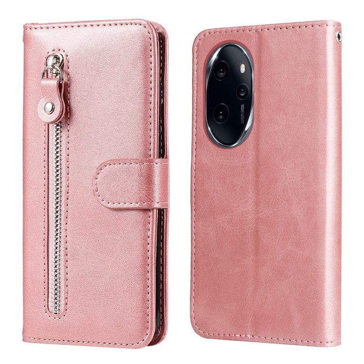 Estuche para Honor 100 Pro de Cuero con Cremallera y Textura de Becerro (Oro Rosa)