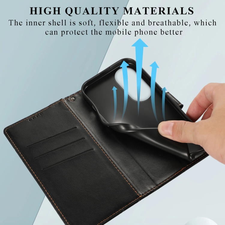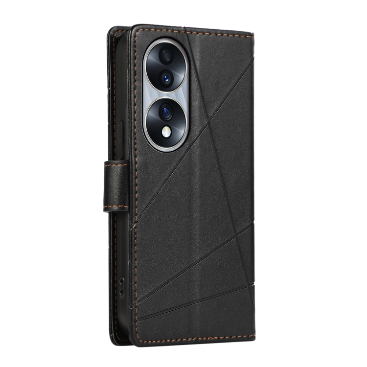 Funda para Honor 70 con Línea en Relieve y Textura de Cuero Genuino PU (Negro)