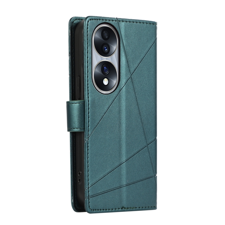 Funda para Honor 70 Línea en Relieve Textura Cuero Genuino PU (Verde)