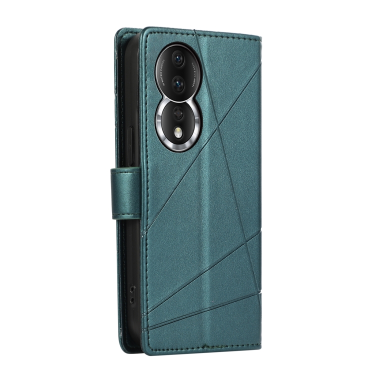 Funda para Teléfono Honor 80 PU con Línea en Relieve y Textura de Cuero Genuino (Verde)