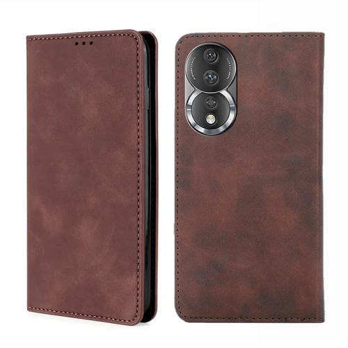Funda Magnética de Cuero para Honor 80 Skin Feel con Tapa Horizontal (Marrón Oscuro)