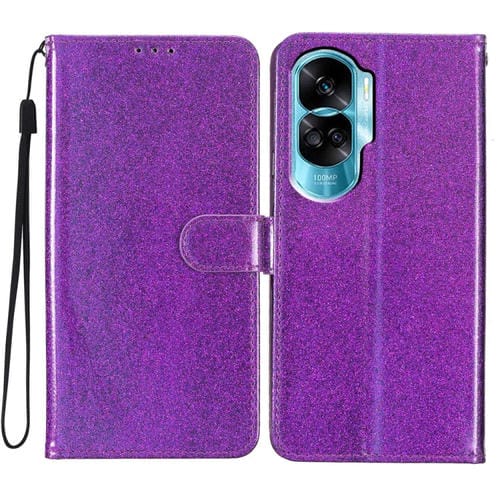 Funda de Cuero con Tapa y Purpurina para Honor 90 Lite (Púrpura)