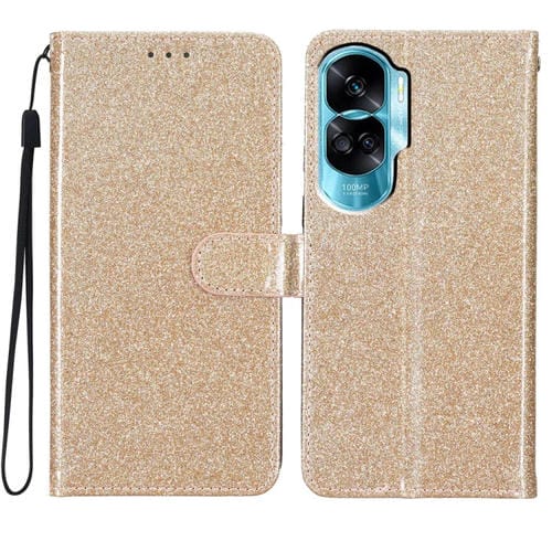Funda de Cuero para Honor 90 Lite con Tapa y Purpurina en Polvo (Dorado)