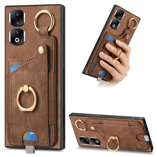 Funda para Honor 90 Pro con Bolsa para Tarjeta, Anillo y Lazo para Colgar (Marrón)
