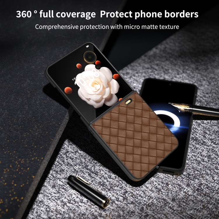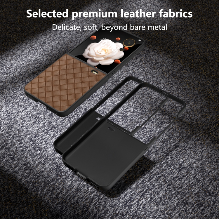 Funda para Honor Magic V Flip de PU con Textura Tejida y Marco Negro (Marrón)