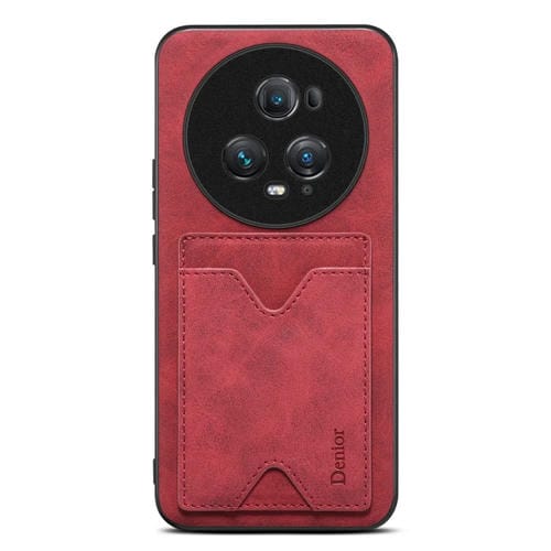 Funda para Honor Magic5 Ultimate Denior PU Contraportada con Ranura para Tarjeta (Rojo)