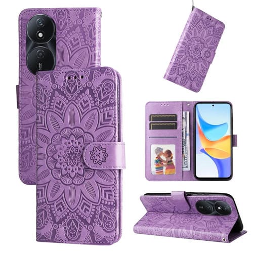 Funda para Honor Play 50 Plus de Cuero con Girasol en Relieve (Púrpura)