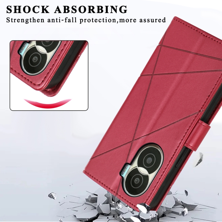 Funda para Teléfono Honor X40I PU con Línea en Relieve y Textura Cuero Genuino (Rojo)