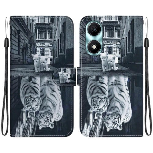 Funda de Cuero para Honor X5 Plus y Play 40C con Dibujo Coloreado y Textura de Cristal (Reflejo de Tigre Gato)