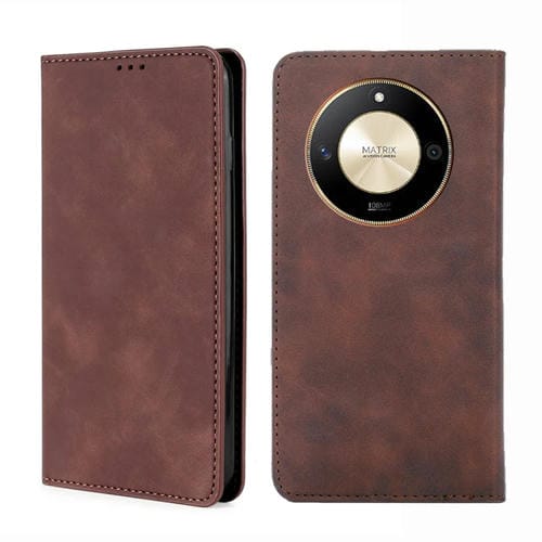 Funda de Cuero Magnética para Honor X50 5G Skin Feel (Marrón Oscuro)