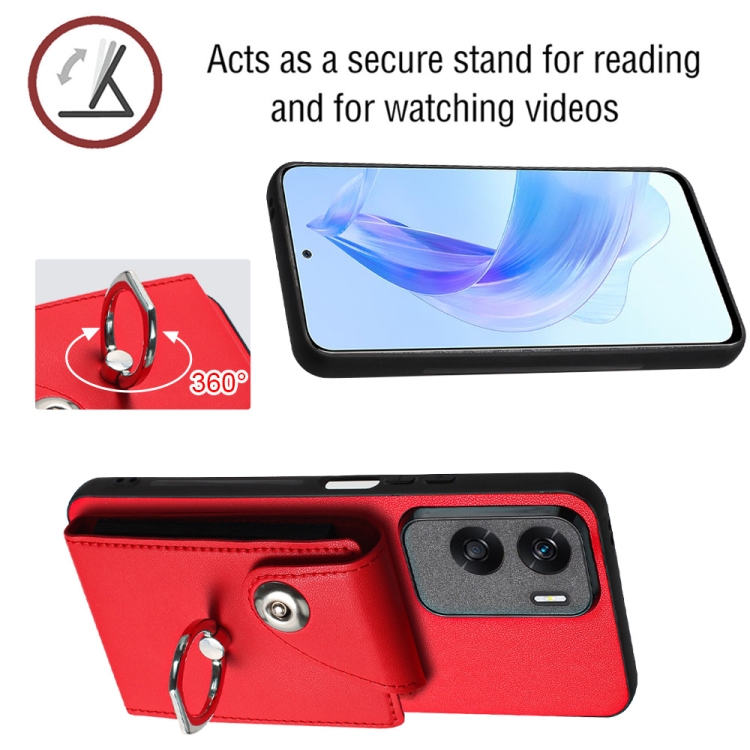 Funda para Honor X50I y 90 Lite de PU con Soporte para Anillo y Bolsa para Tarjeta (Rojo)