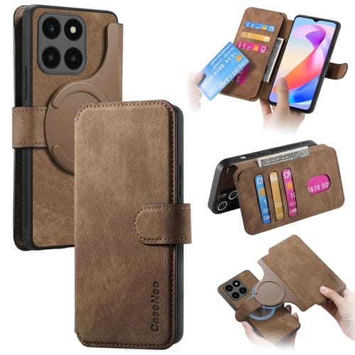 Funda para Honor X6A Caseneo Magsafe Rfid Cuero Retro Antirrobo (Marrón)
