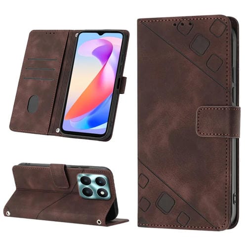 Funda de Cuero con Relieve para Honor X6A Teléfono (Marrón)