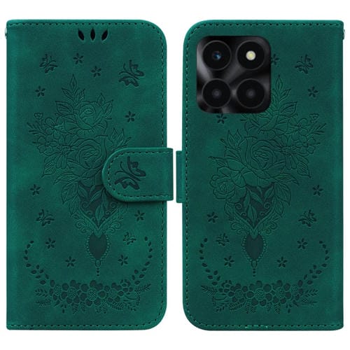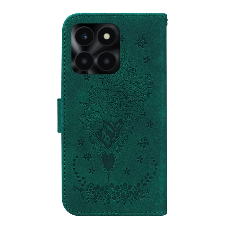 Funda para Honor X6A de Cuero con Relieve de Mariposa y Rosa (Verde)