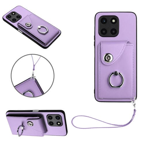 Funda para Honor X6A Global con Organ Card Bag, Ring Holder y Cordón (Púrpura)