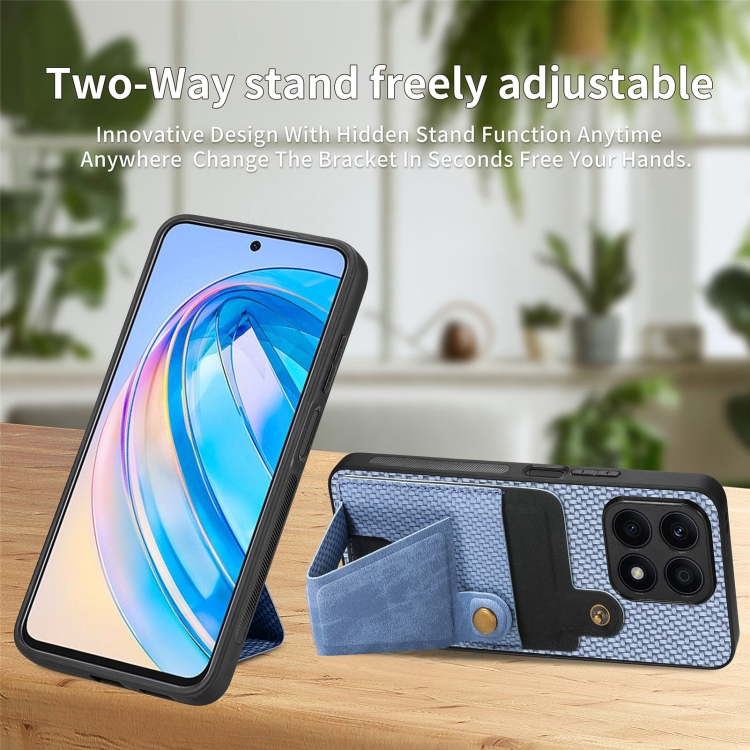 Funda Cartera para Honor X8A Fibra de Carbono Flip Card con Soporte en Forma de K (Azul)