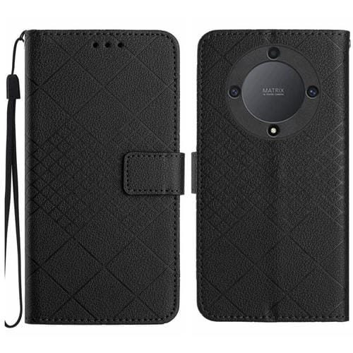Funda de Cuero para Honor X9A y Magic5 Lite 5G con Textura de Rejilla Rómbica (Negro)