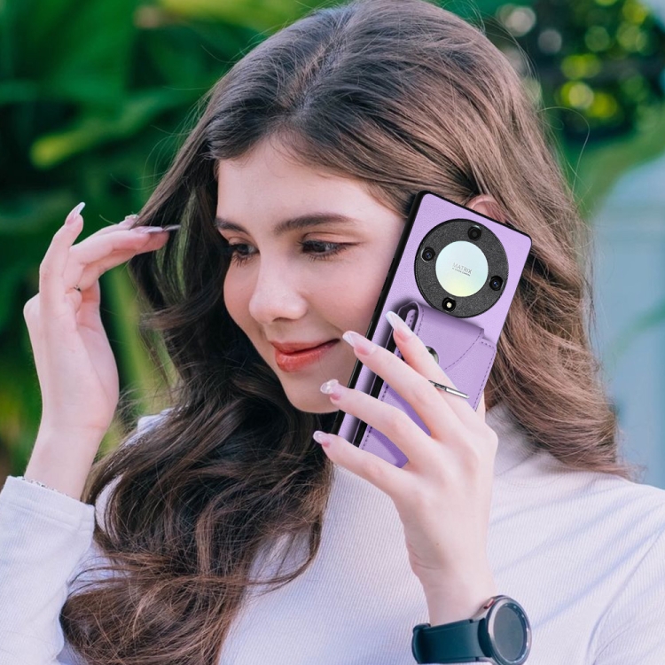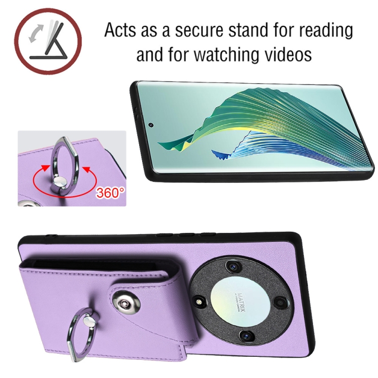 Funda para Honor X9A y Magic5 Lite de PU con Soporte para Anillo y Bolsa para Tarjeta (Púrpura)