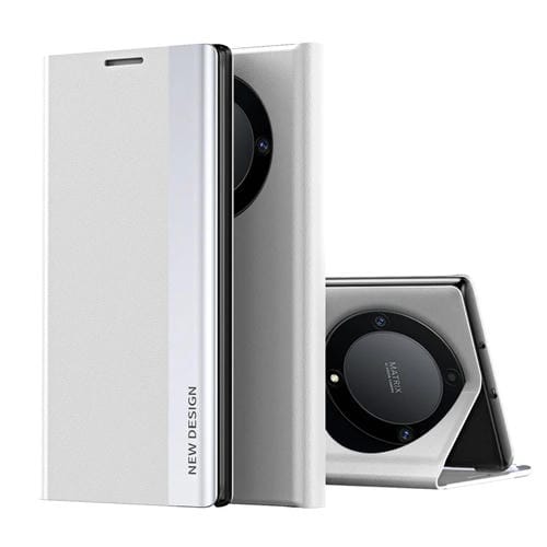 Funda de Cuero para Honor X9B con Adsorción Galvanizada Lateral (Plata)