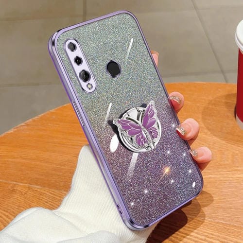 - 1x Funda TPU para Huawei Enjoy 9S con Soporte de mariposa y brillo degradado (Púrpura)