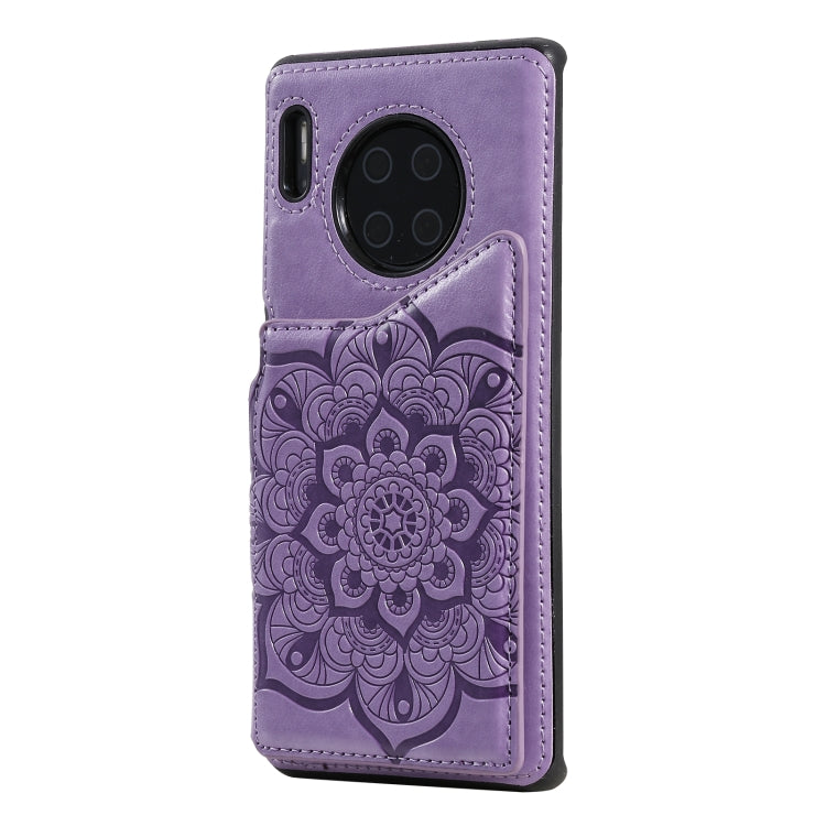 Para Huawei Mate 30 Pro Flor Patrón de estampado de estampado de estampado de impermeables con soporte y ranuras para tarjetas y marco de fotos (púrpura)