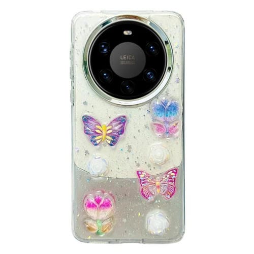 Estuche TPU Huawei Mate 40 Pro con Mariposas de Cristal Colorido Tridimensional (Flores de Mariposa)