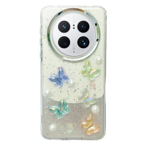Estuche TPU para Huawei Mate 50 Pro con Mariposa de Cristal Colorido Tridimensional (Perla de Mariposa)