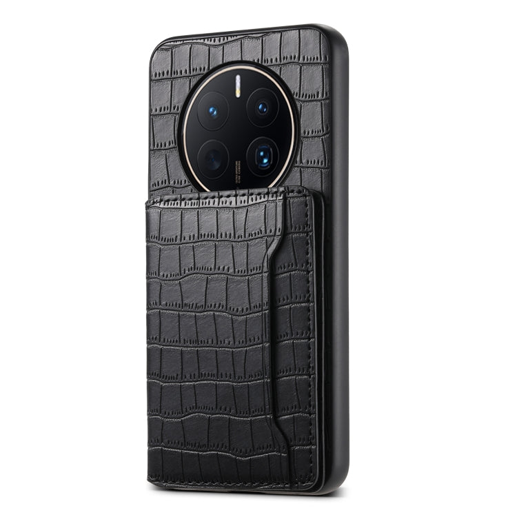 Funda para Huawei Mate 50 Pro con Diseño de Bolsa para Tarjetas y Textura de Cocodrilo (Negro)